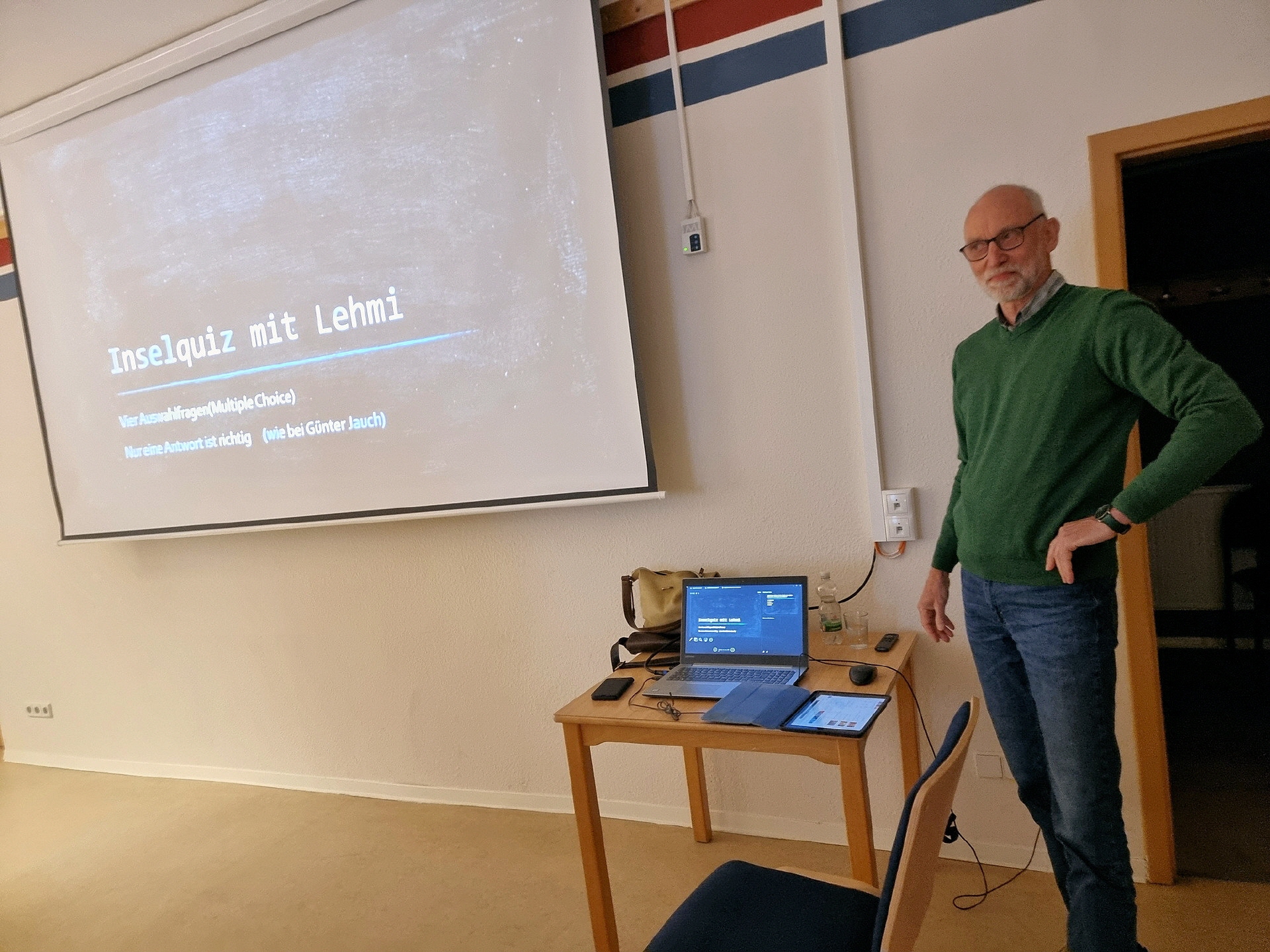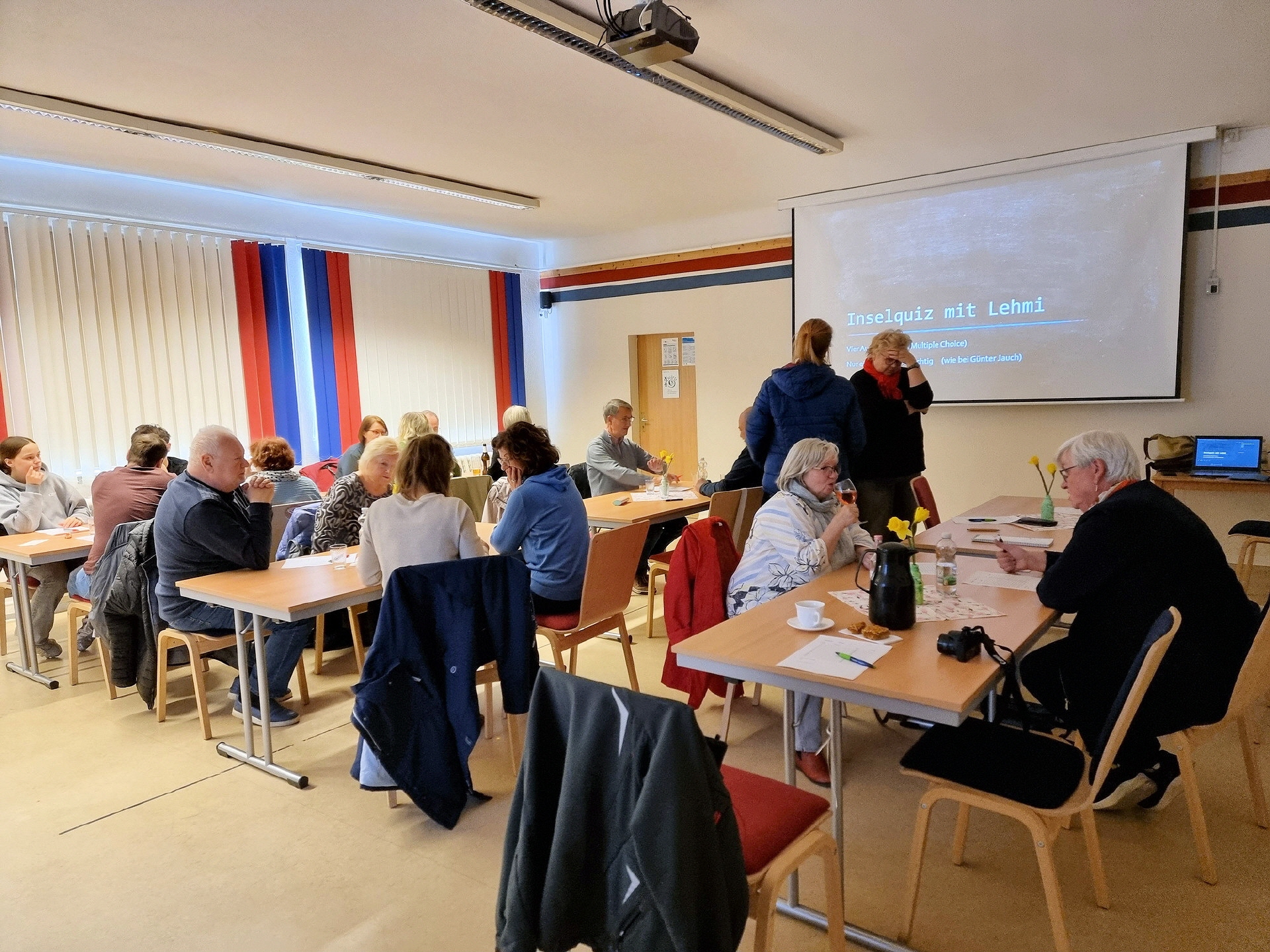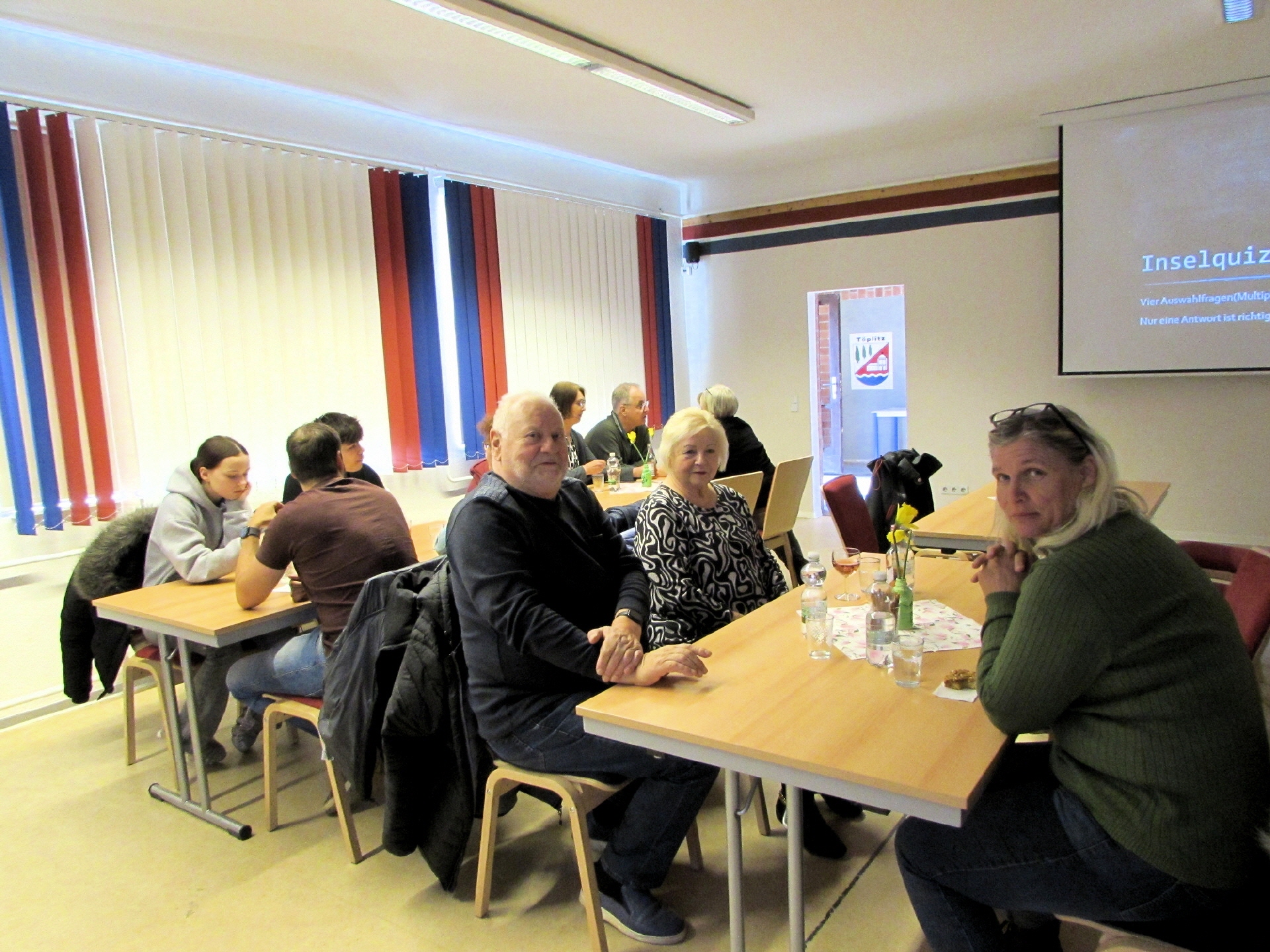 Am 10. April 2026 fand im Töplitzer Inselzentrum ein Quizabend statt. Catrin Ramdohr vom Heimatverein hieß alle zu einem entspannten Abend willkommen, ähnlich wie bei Günter Jauch. Die Atmosphäre war locker und angenehm. Frank Lehmann aus Töplitz leitete den Abend mit seinem großartigen Quiz.