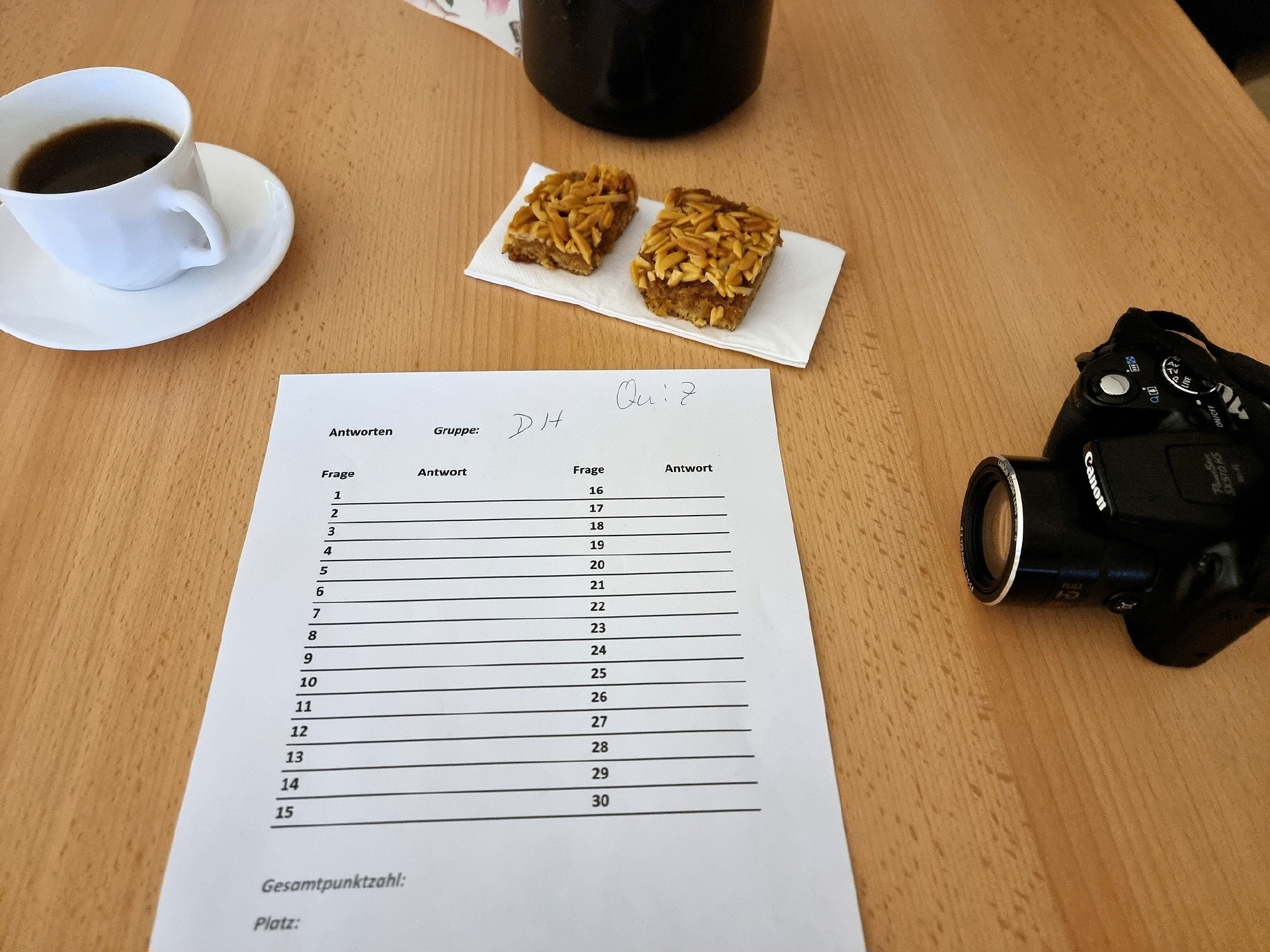 Die Fragen deckten Allgemeinwissen, Geschichte, Technik, Wissenschaft, Kultur und vieles mehr ab. Der Spaß stand im Vordergrund und es wurde nicht allzu ernst genommen. Man konnte einzeln oder in kleinen Gruppen raten. Es gab 30 Fragen mit jeweils 4 Antwortmöglichkeiten, von denen nur eine richtig war. Nach der Auswertung wurden die Antworten präsentiert und die Gewinner erhielten eine kleine Ehrung mit Preisen. Anschließend genoss man einen gemütlichen Abend mit Erfrischungen, Snacks und lustigen Gesprächen. [DH]